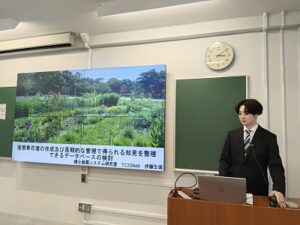 また、このゼミでは様々な企業の卒業生OBにお越しいただき、就職活動に関する話題提供をお願いしています。今回は建設コンサルタント会社のウィルさんから業界や会社の選び方、給与明細の見方等、多岐にわたる話を紹介いただきました。昨年に引き続きありがとうございました。